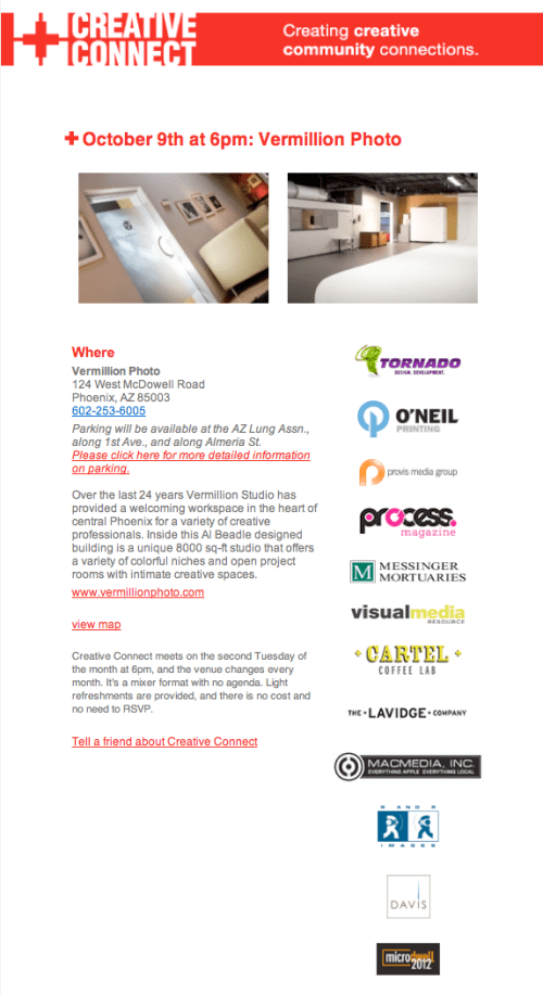 Vermillion Photo Hosts Creative Connect Mixer October 9th at 6pm.