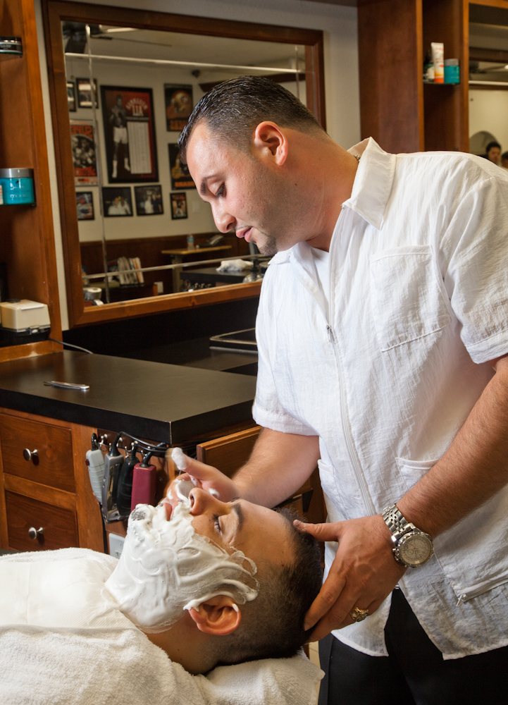 Boris shaving a lucky customer